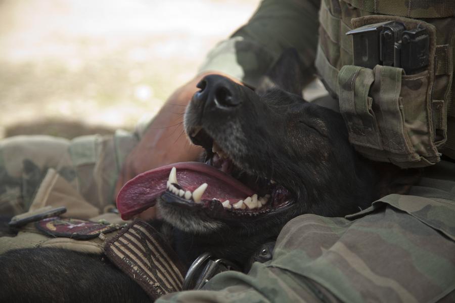 Read moreWilbur, a Marine Special Operations Team member, takes a break with his handler after successfully sweeping a build site for an Afghan Local Police checkpoint in Helmand province, on March 30, 2013. #