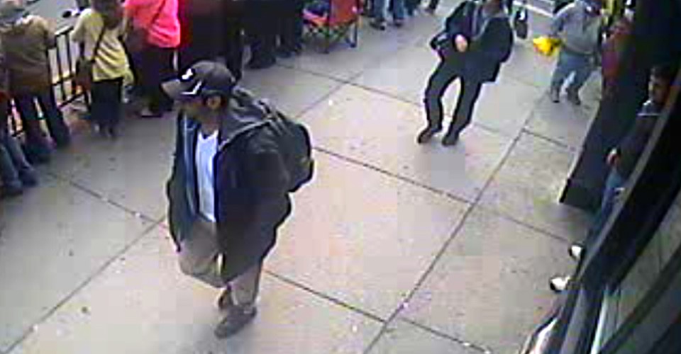 The Federal Bureau of Investigation has released a set of photographs and a video of two men, identifying them as suspects in the Boston Marathon bombing and asking for public help in finding them. If you know anything about these individuals, the FBI urges you to contact it here: https://bostonmarathontips.fbi.gov, or call 1-800-CALL-FBI (1-800-225-5324), prompt #3.