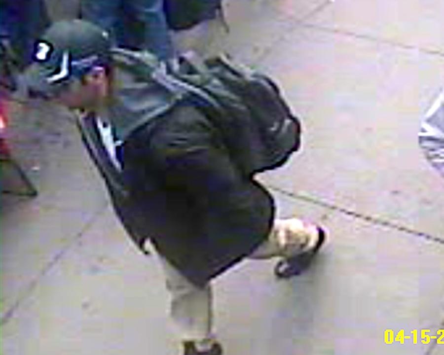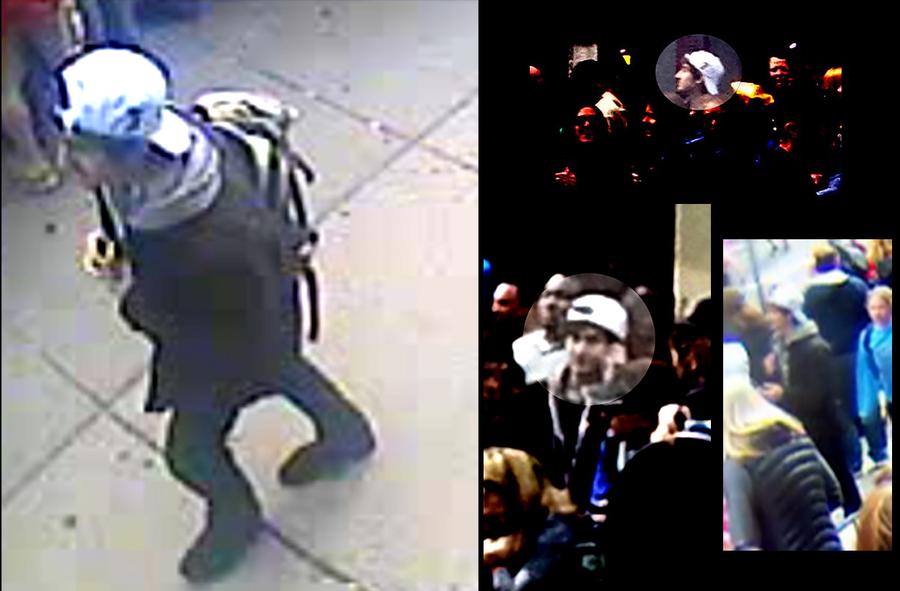 Suspect #1. The FBI has just released a set of photographs and a video of two "suspects" in the Boston Marathon bombing, asking the public for its help in finding them. If you know anything about these individuals, you are urged to contact the FBI at https://bostonmarathontips.fbi.gov, or call 1-800-CALL-FBI (1-800-225-5324), prompt #3. (FBI) #
