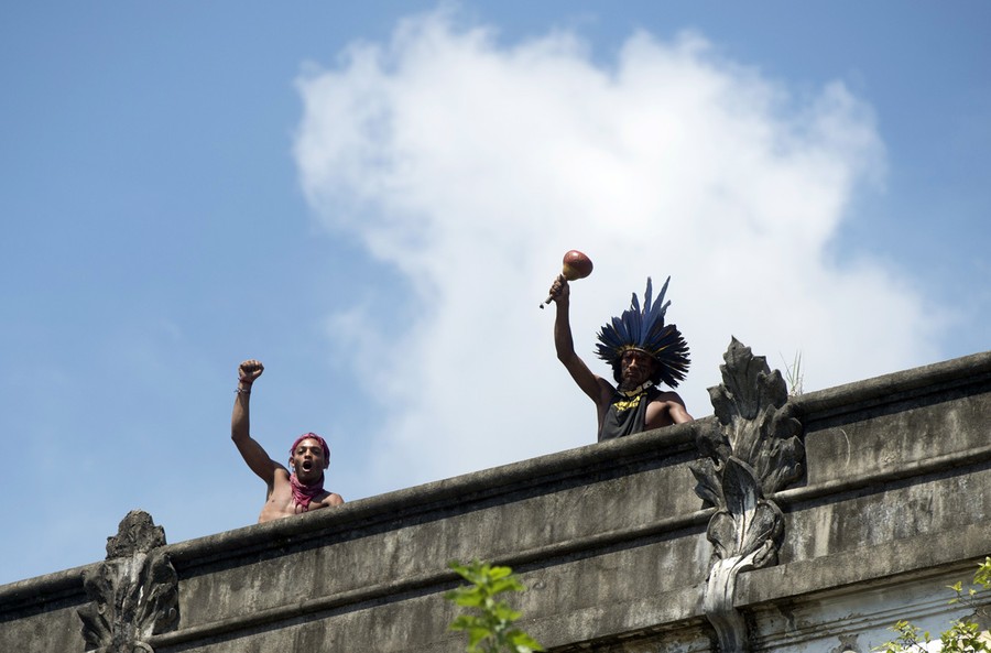 Read moreAn indigenous man participates in a protest at the old Indian Museum in Rio, during the United Nations Conference on Sustainable Development, or Rio+20, on June 21, 2012. #