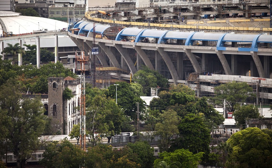 Read moreAn aerial view shows the final touches of the roof installation at the Maracana Stadium, which is undergoing renovation for the 2014 World Cup, in Rio de Janeiro April 9, 2013. The abandoned Indian Museum can be seen at lower right. #