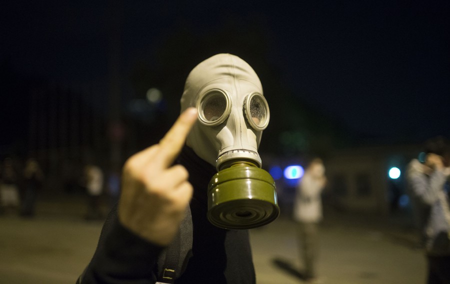 Read moreA couple wearing gas masks walk in a street between Taksim and Besiktas in Istanbul, Turkey, on June 4, 2013 during an anti-government demonstration. What started as an outcry against a local development project has snowballed into widespread anger against what critics say is the government's increasingly conservative and authoritarian agenda. #