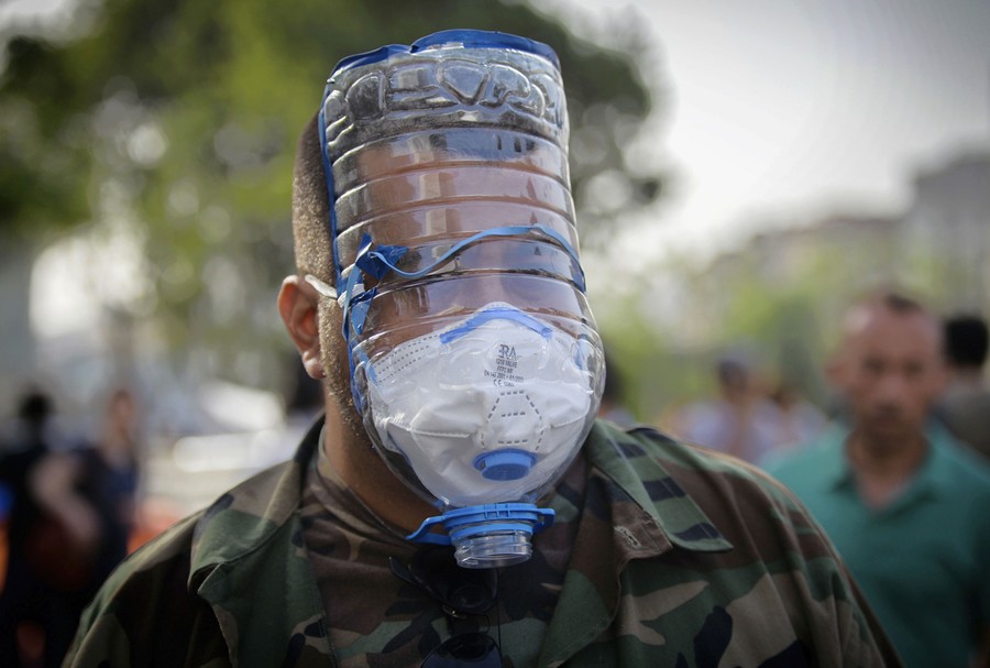 Read moreIn this Thursday, May 30, 2013 photo, a man wears a make-shift gas-mask hours before riot police used tear gas and pressurized water to quash a peaceful demonstration by hundreds of people staging a sit-in protest to try and prevent the demolition of trees at an Istanbul park. #
