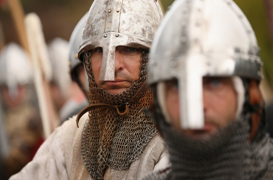 Read moreActors portraying Norman soldiers receive a briefing before the annual reenactment of the Battle of Hastings at Battle Abbey in Battle, England, on October 13, 2012. #