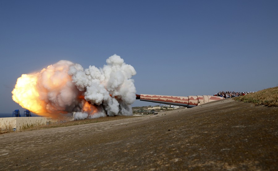 Read moreAn Armstrong 17.72 inch muzzle-loading 100-ton gun is fired during a historical reenactment at the Fort Rinella coastal battery in Kalkara, outside Valletta, on May 5, 2013. Fort Rinella was built by the British Royal Engineers in 1878 as part of a set of four equally designed coastal batteries in Gibraltar and Malta. Each fort was armed with a single 100-ton gun, none of which were ever fired in anger. #