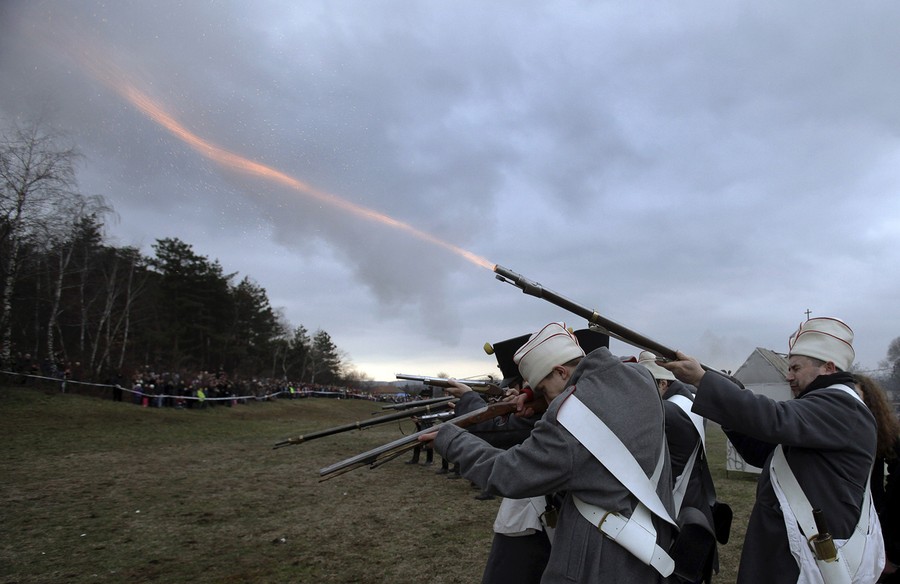 Read moreHistory enthusiasts dressed as soldiers fight during the reenactment of Napoleon's famous battle of Austerlitz near the southern Moravian town of Slavkov, on December 1, 2012. #