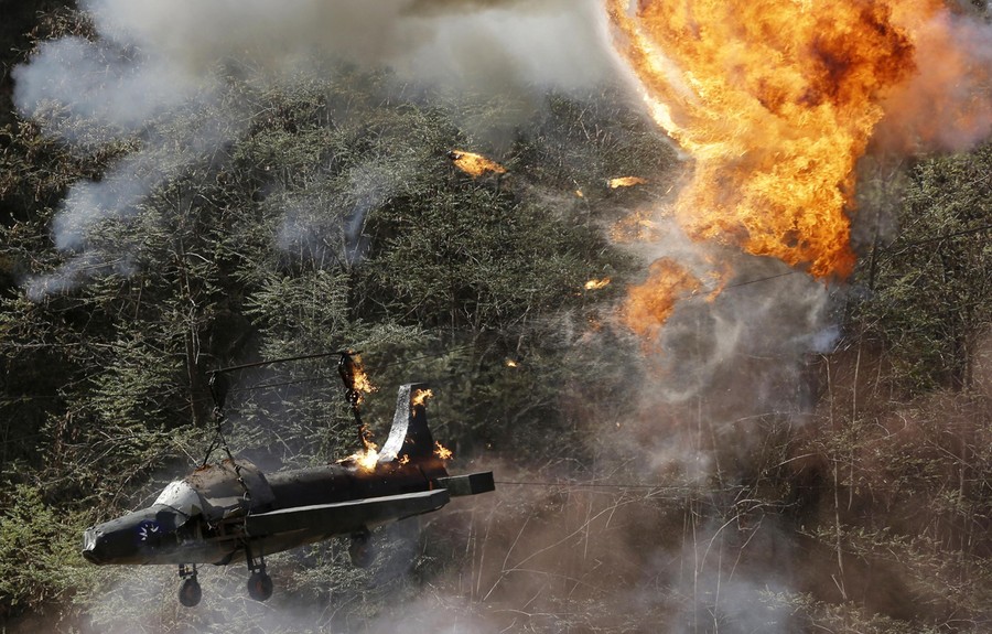 Read moreA replica of a Kuomintang aircraft explodes during a battle re-enactment of the Defense of Yan'an at a tourist attraction in Yan'an, in northwestern China's Shaanxi province, on October 19, 2012. Yan'an was the 1940s communist base where Mao traveled, retreating from Kuomintang forces and regrouping to plot a revolution that brought the Communists into power in 1949. #
