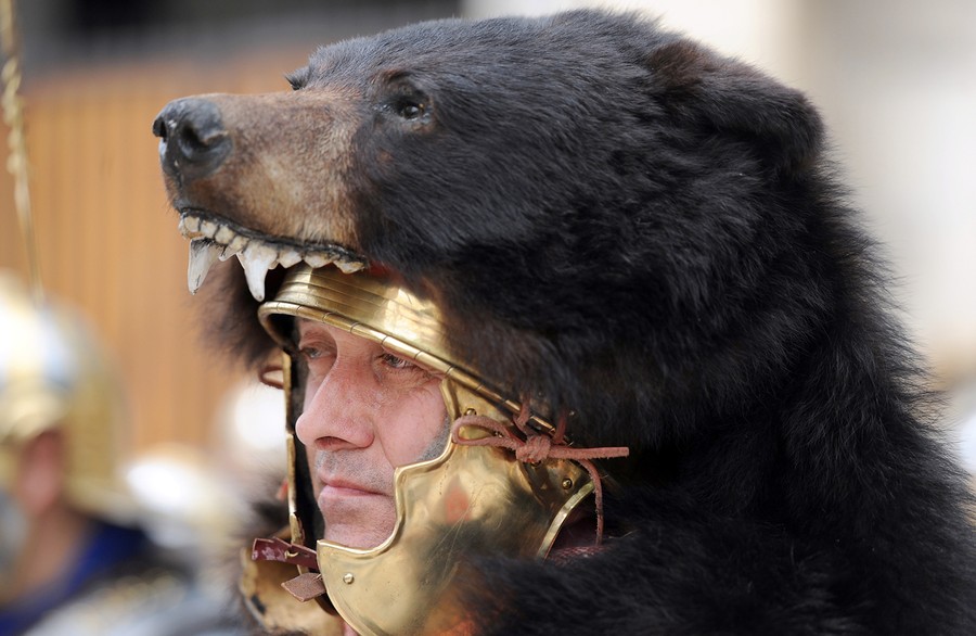 Read moreA man takes part in a historical reenactment in the forecourt of the Maison Carree as part of the third edition of the Roman Games in Nimes, southern France, on April 28, 2012. The priests of the Imperial cult performed a ceremony in honor of Emperor Hadrian passing through Nîmes. #