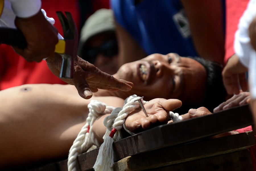 Read moreA penintent is nailed to a cross during the reenactment of crucifixion on Good Friday in the village of San Juan, San Fernando City, north of Manila, Philippines, on March 29, 2013. #