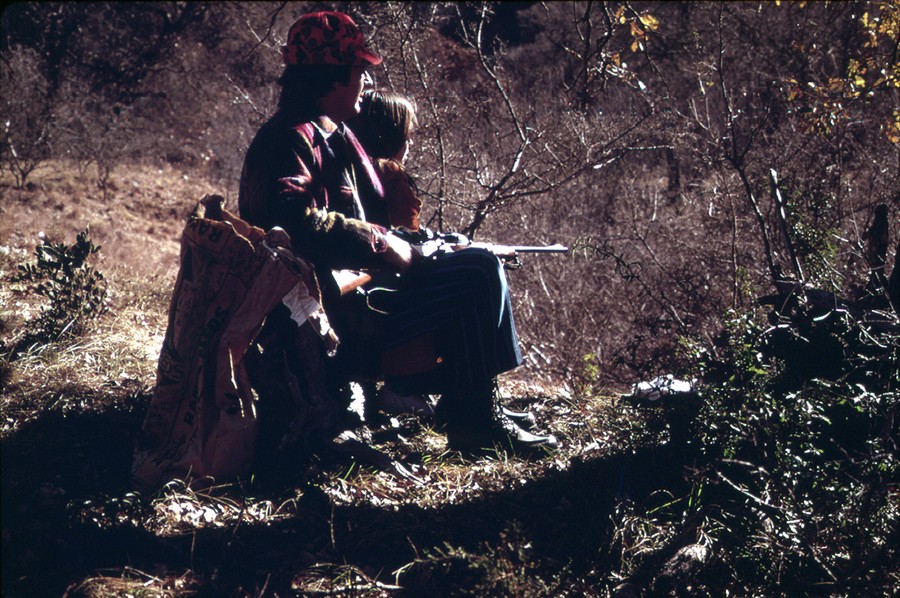 Read moreHunter and daughter before sunset waiting for a deer. Some of the hunters leave food out for the animals before the season starts. Once the deer get into routine feeding, the hunters can shoot them without much effort. Near San Antonio, December 1973. #