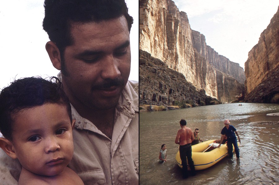 Read moreLeft: Migrant father with young son, June 1972. This man and his family follow the crops north from Texas each year, living in substandard housing, and laboring all day for $2.00 an hour. Right: End of float trip on the Rio Grande River through the Santa Elena Canyon. Mexico is on the left, U.S. on the right, May 1972. #