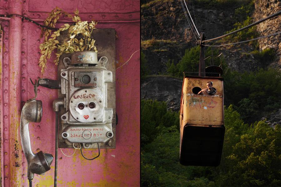 The mining town of Chiatura, Georgia, surrounded by steep cliffs, is criss-crossed by a network of aging Soviet-era aerial tramways that are still in use today. In the early 20th century, after the U.S.S.R. annexed Georgia, Soviet authorities were intent on extracting the vast manganese deposits beneath Chiatura. In the 1950s, planners began work on what locals call the "Kanatnaya Doroga," or "rope road," that still connects almost every corner of the town. Today, while some of the cars have rusted away, 17 of the aging tramways remain in service. Photographer Amos Chapple (who previously took us inside Iran and Turkmenistan) recently visited Chiatura, where he became fascinated with the cable cars and the locals who operate and ride them daily.
