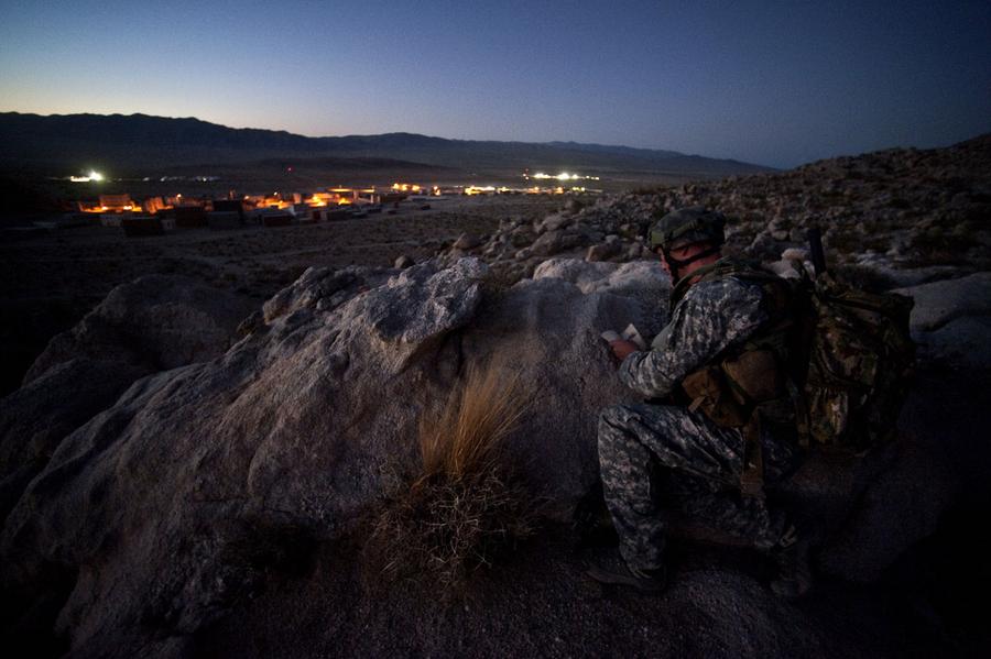 Read moreU.S. Army Sgt. 1st Class Amando Ortiz, Company C, 413th Civil Affairs Battalion, from Dyess Air Force Base, Texas, patrols the city of Razish, during a scenario at National Training Center on Fort Irwin, on March 20, 2012. #