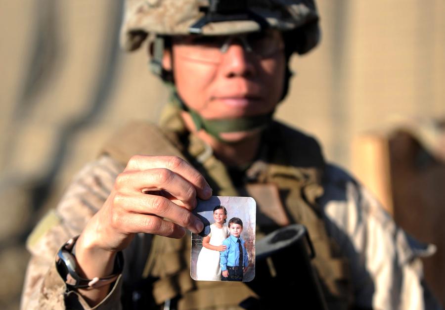 Read moreSargeant Patricia A. Aquino, US Marines 2nd Batallion, shows a picture of her children, Jenna and Christopher prior to a patrol in Gamser, Helmand province, on February 20, 2011. #