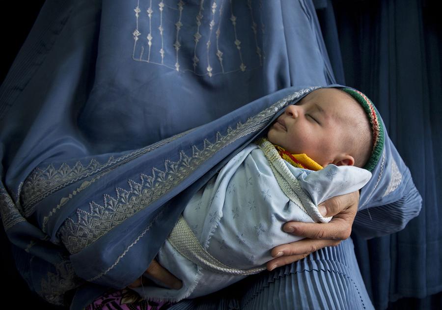 Read moreAn Afghan woman holds her newborn baby, wrapped in her burqa, as she waits to try on a new burqa in a shop in the old town of Kabul, on April 11, 2013. Although the burqa remains popular, tradesmen say times are changing in Kabul at least, with demand for burqas declining as young women going to school and taking office jobs refuse to wear the cumbersome garments. #