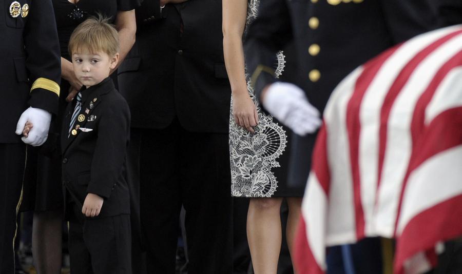 Read moreKaden Bowden, son of U.S. Army Staff Sgt. Joshua J. Bowden, looks at the casket for his father during burial services for Staff Sgt. Bowden at Arlington National Cemetery, Virginia, on September 27, 2013. Bowden was from Villa Rica, Georgia, and died on August 31, 2013, from injuries sustained while serving in Afghanistan. #