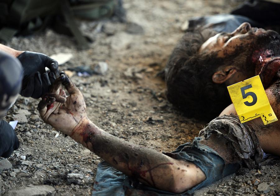 Click to view imageRead moreAn Afghan security member takes a fingerprint from a dead Taliban fighter in a building which was used for an attack on the Kabul airport, on June 10, 2013. All seven militants who launched the attack died in the assault, Afghan police said, adding that no civilian or security force casualties had been reported. "There were seven assailants -- two (suicide bombers) died detonating themselves and five others were killed in fighting," Mohammad Ayoub Salangi, chief of Kabul police, told reporters. #