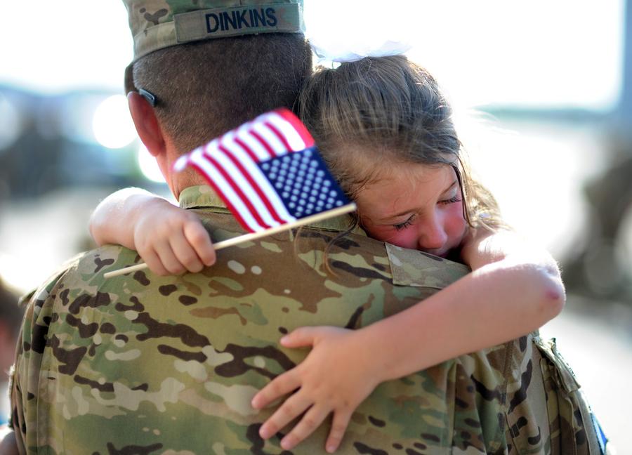 Read moreU.S. Army Staff Sgt. Jason Dinkins with the 3rd Combat Aviation Brigade is hugged by his daughter Olivia Chastain after a welcome home ceremony, on June 11, 2013 at Hunter Army Airfield in Savannah, Georgia, The aviation brigade deployed 2,200 soldiers to Afghanistan in December on a 9-month mission, but came home earlier than expected. #