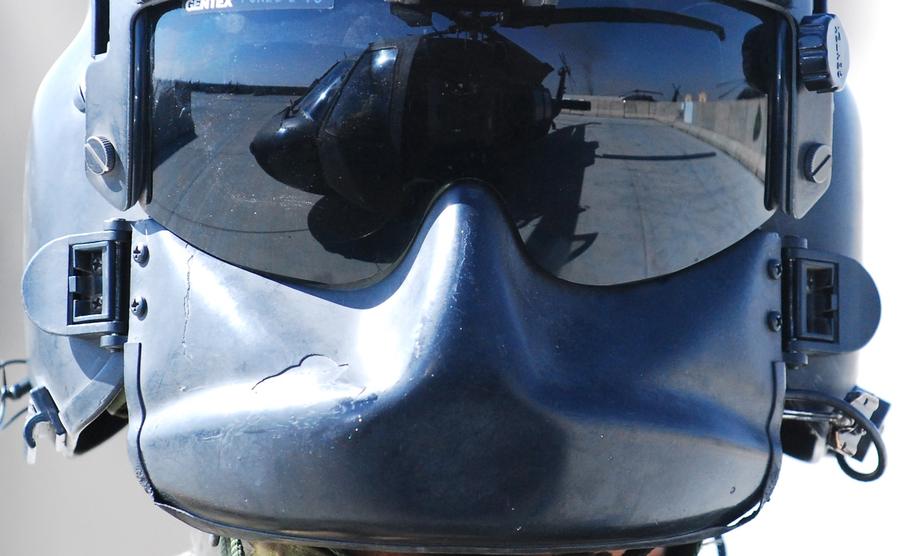 Read moreThe reflection of a UH-60M Black Hawk helicopter, seen in the visor of Sgt. Corey Konieczko, a UH-60M Black Hawk helicopter crew chief assigned to C Company, 2nd Battalion (Assault), 10th Combat Aviation Brigade, prior to a personnel movement mission, on September 25, 2013, at Forward Operating Base Shank, Afghanistan. #