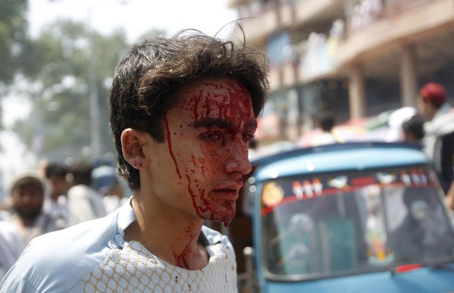 Read moreAn injured Afghan boy with blood on his face walks at the site of bomb explosion in Jalalabad province, on August 6, 2013. A remote control bomb went off in Jalalabad city, killing one person and injuring three others, provincial officials said. #