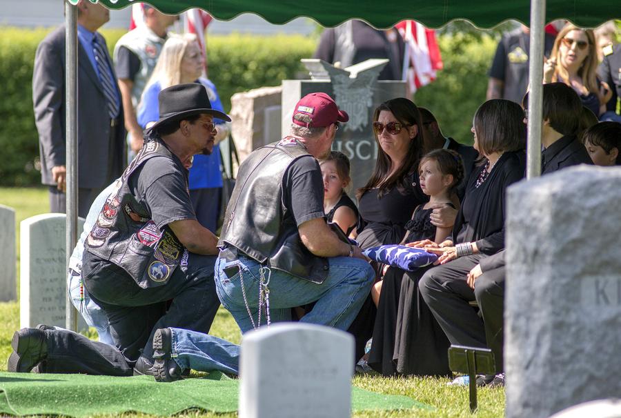 Read moreMembers of a motorcycle honor guard pay respects to Elizabeth Harman, sister of Lt. Col. Jaimie Leonard, who was killed in Afghanistan by an Afghan soldier along with two other Americans earlier this month, and who was laid to rest at the United States Military Academy Cemetery on Thursday June 20, 2013, in West Point, New York. #