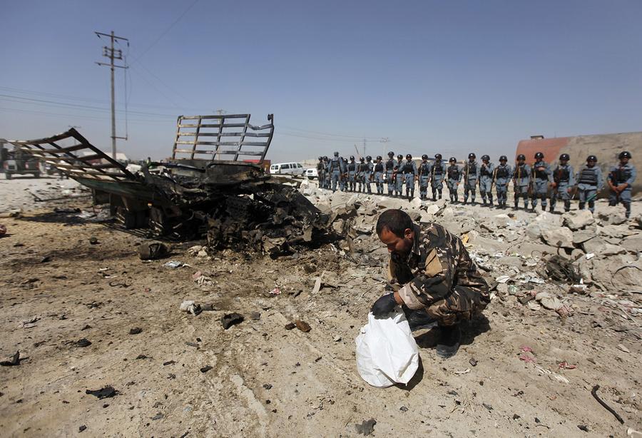 Read moreAfghan policemen, near a crater at the scene of suicide attack in Maidan Shar, the capital of Wardak province, on September 8, 2013. At least four Afghan intelligence agents were killed and more than one hundred people were wounded, the provincial government said in a statement. #