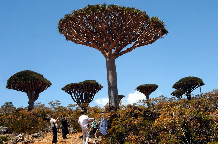 Read moreDragon Blood trees, known locally as Dam al-Akhawain, or blood of the two brothers, on Yemen's Socotra Island, on March 27, 2008. Prized for its red medicinal sap, the Dragon Blood trees are the most striking of 900 plant species on the Socotra islands in the Arabian Sea, 380 km (238 miles) south of mainland Yemen and 80 km east of the Horn of Africa. #