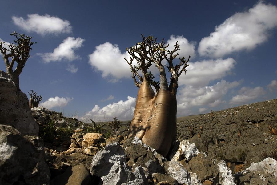 Far off the coast of Yemen lies isolated Socotra island, where hundreds of plants and animals have developed into species unique to the island. The best-known of these might be the Dragon Blood trees, with their densely-packed crowns and blood-red sap. Socotra, sometimes referred to as "the Galapagos of the Indian Ocean," is slowly emerging from its long isolation -- in 1999, the first airport opened, and tourism began to pick up. In an effort to counter any negative impacts, UNESCO recognized the island as a World Natural Heritage Site in 2008, promoting conservation of the unique environment and some of its endangered species.