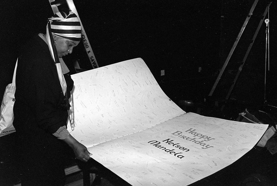 Read moreWinnie Madikizela-Mandela studies messages to her then-husband anti-apartheid leader and member of the African National Congress Nelson Mandela, at his 70th birthday held in Johannesburg, on July 18, 1988. #