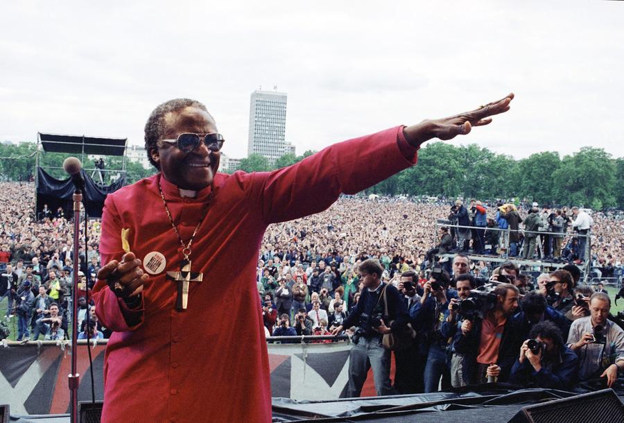 Read moreArchbishop Desmond Tutu of Cape Town smiles as he gestures from a platform during the Nelson Mandela Freedom Rally in London's Hyde Park, on July 17, 1988 - on the eve of the jailed African National Congress leader's 70 birthday. A crowd estimated at 250,000 attended the rally. #