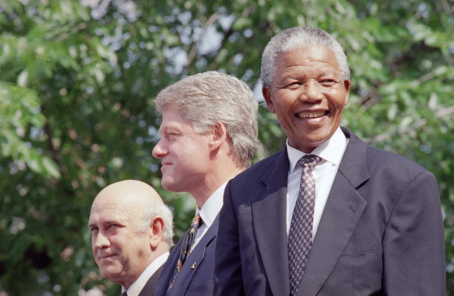 Read moreFrom left, F.W. de Klerk, President Bill Clinton, and Nelson Mandela appear at ceremonies honoring the two South African leaders with the Philadelphia Liberty Medal at Independence Hall in Philadelphia, on July 4, 1993. #