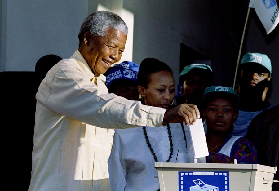 Read moreNelson Mandela casts his ballot in the presidential election at Ohlange High school in Inanda near Durban, on April 27, 1994. The election was the first in South Africa's history with universal adult suffrage. #