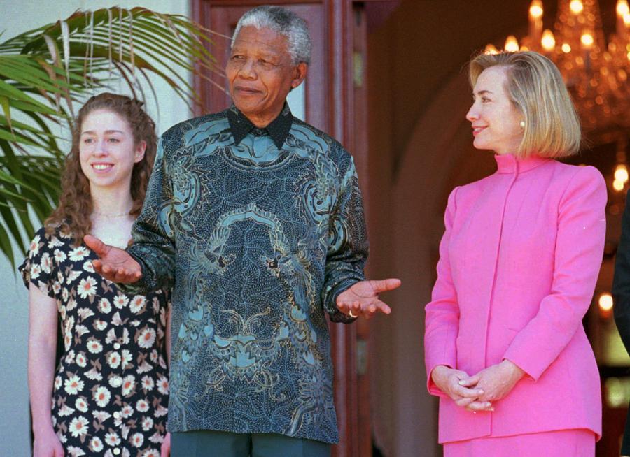 Read moreSouth African President Nelson Mandela and United States first lady Hillary Rodham Clinton, and daughter Chelsea Clinton, at a meeting in Cape Town, on March 20 1997. #