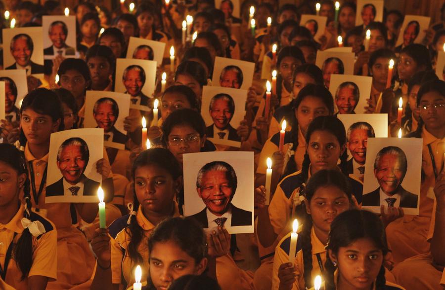 Read moreSchoolchildren hold candles and portraits of former South African President Nelson Mandela during a prayer ceremony at a school in the southern Indian city of Chennai, on December 6, 2013. Anti-apartheid hero Mandela died peacefully at home at the age of 95 on Thursday after months fighting a lung infection, leaving his nation and the world in mourning for a man revered as a moral giant. #