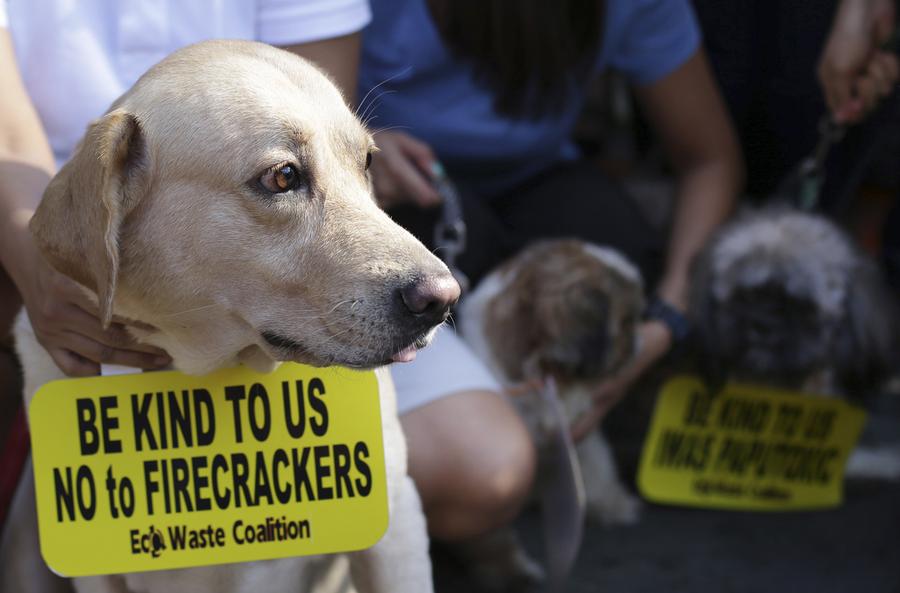 Read moreA dog wears a sign at a rally against firecrackers and fireworks during New Year revelries in Manila, Philippines on December 29, 2013. The group said the loud explosions from firecrackers, traditionally set off to welcome the New Year and drive away bad spirits, can also harm on the sensitive ears of humans and animals. #