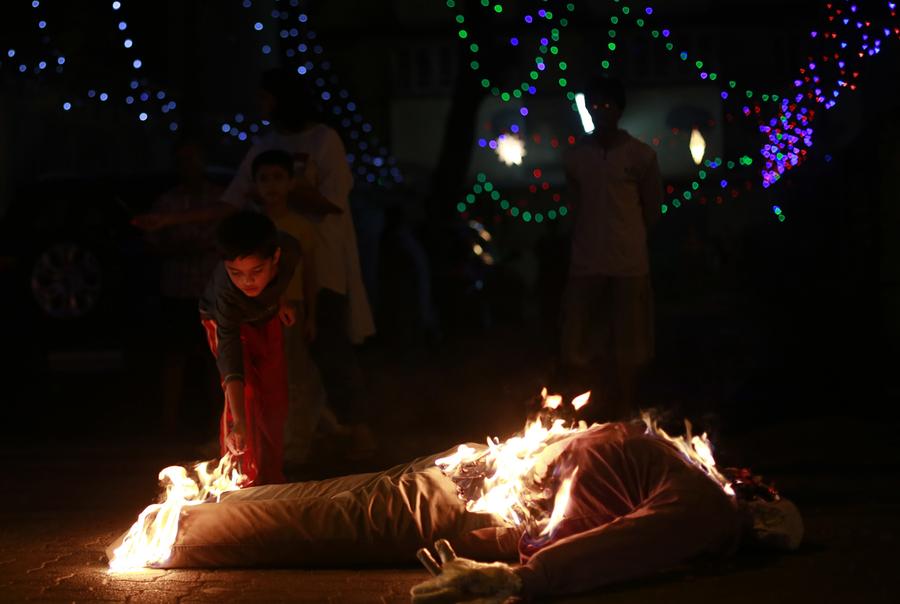 Read moreAn Indian boy lights the effigy of an old man, symbolizing the burning of the past, and getting ready to start a happy New Year without bad memories of the past in Mumbai, India, on January 1, 2014. #