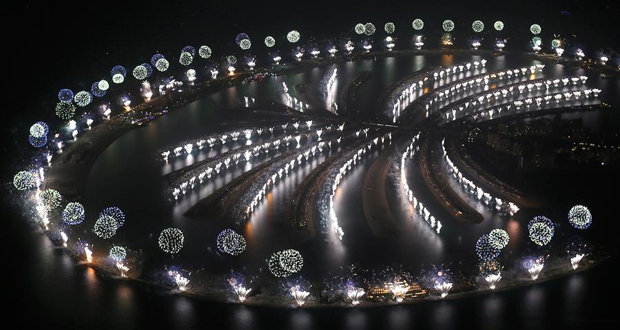 Read moreFireworks explode over Palm Jumeirah in Dubai, on January 1, 2014 to celebrate the new year. Dubai kicked off New Year with a dazzling bid for a new world record to cap those the Gulf city state already holds for its mammoth property developments. The glittering fireworks display that lasted around six minutes spanned over 100 kilometers (60 miles) of the Dubai coast, which boasts an archipelago of man-made islands and Burj Khalifa, the world's tallest tower. #