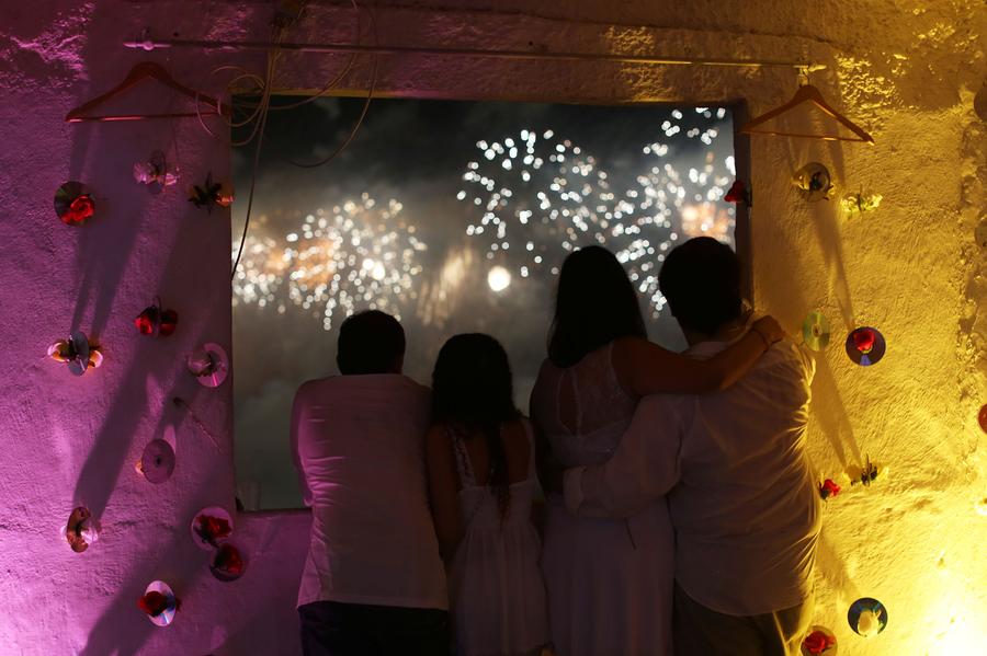 Read morePeople on a rooftop in the Pavao Pavaozinho slum watch fireworks exploding over Copacabana beach during New Year's Eve celebrations in Rio de Janeiro, Brazil, on January 1, 2014. #