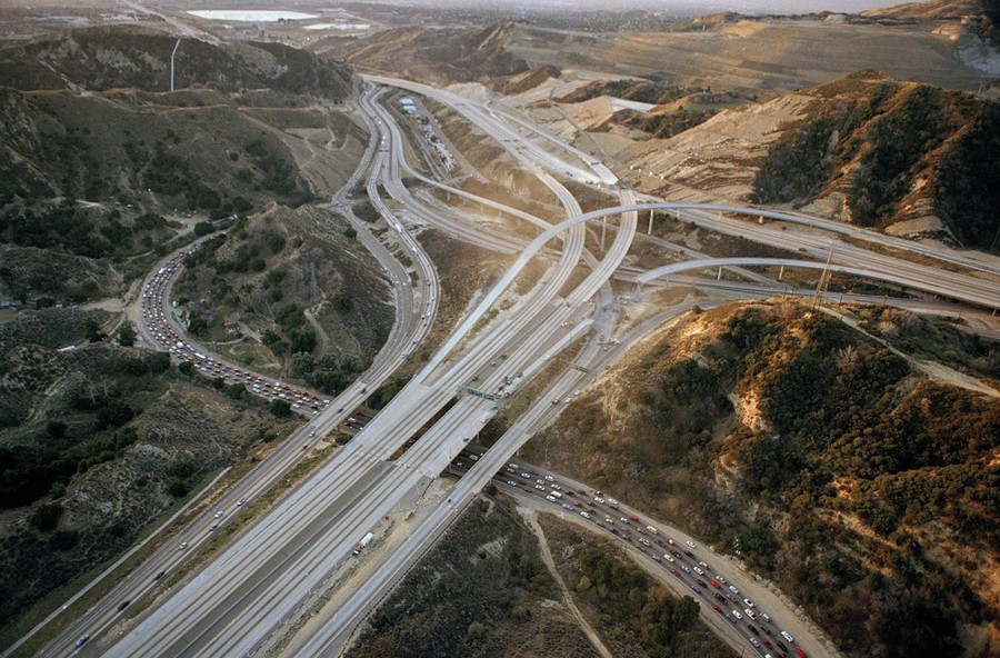 Read moreEarly morning commuters face bumper-to-bumper traffic as they travel the Sierra Highway to avoid the earthquake-damaged Highway 14 and Interstate 5 interchange, on their way to Los Angeles, on January 19, 1994. #