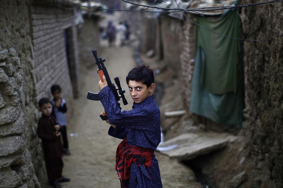 Read moreAn Afghan refugee boy poses with a plastic rifle as he and other children celebrate the first day of the Eid al-Fitr festival, in a slum outside Islamabad, on August 20, 2012. #