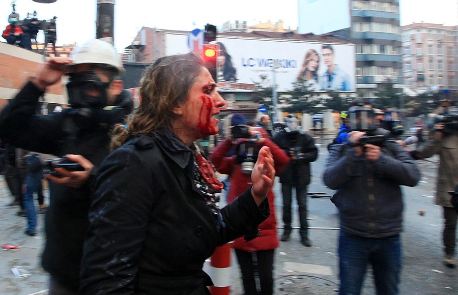 Read moreA young woman, held after she was wounded during clashes between riot police and protestors after the funeral of Berkin Elvan in Istanbul on March 12, 2014. Riot police fired tear gas and water cannons at protestors in the capital, while in Istanbul, crowds shouting anti-government slogans lit a huge fire as they made their way to a cemetery for Elvan's burial. A 15-year-old boy who died from injuries suffered during last year's anti-government protests, Elvan's story became a symbol for many Turks of the heavy-handed police tactics against mass anti-government demonstrators in June, a major challenge to Erdogan's 11-year-rule. #