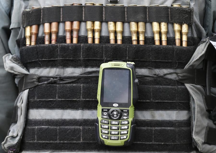 Read moreAn Afghan policeman clips his mobile phone on his armored vest during an election campaign for Afghan presidential candidate Ashraf Ghani in Kabul, on April 1, 2014. #