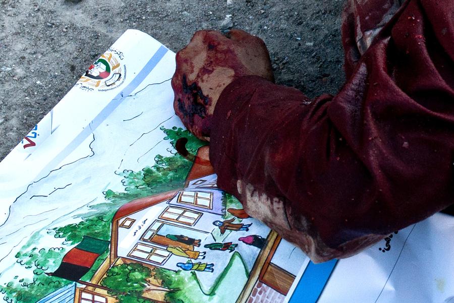 Read moreThe bloodied arm of a dead Taliban fighter lies over an election poster at the site of a suicide attack on an election commission office in Kabul on March 25, 2014. Fifteen people died in violence around Afghanistan less than two weeks before the country's presidential poll. The insurgents vowed a campaign of violence to disrupt the ballot, urging their fighters to attack polling staff, voters and security forces in the run-up to election day. #