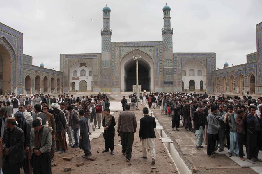 Read moreAfghan men line up before casting their votes in a polling station in Herat, Afghanistan, on April 5, 2014. Afghan voters lined up for blocks at polling stations nationwide on Saturday, defying a threat of violence by the Taliban. #