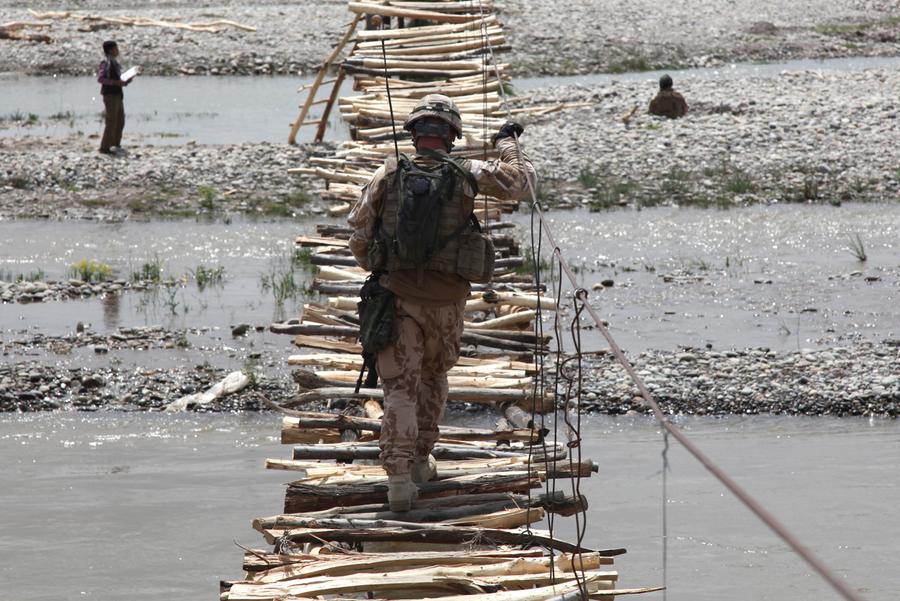 Read moreA Czech Republic soldier with the 1st Mechanized Company, 41st Battalion, 4th Rapid Deployment Brigade, on patrol across a bridge over the Drya Ye Panjshayr River, Parwan province, on April 29, 2014. The patrol was conducted to find the origins of rocket attack sites used against Bagram Air Field. #