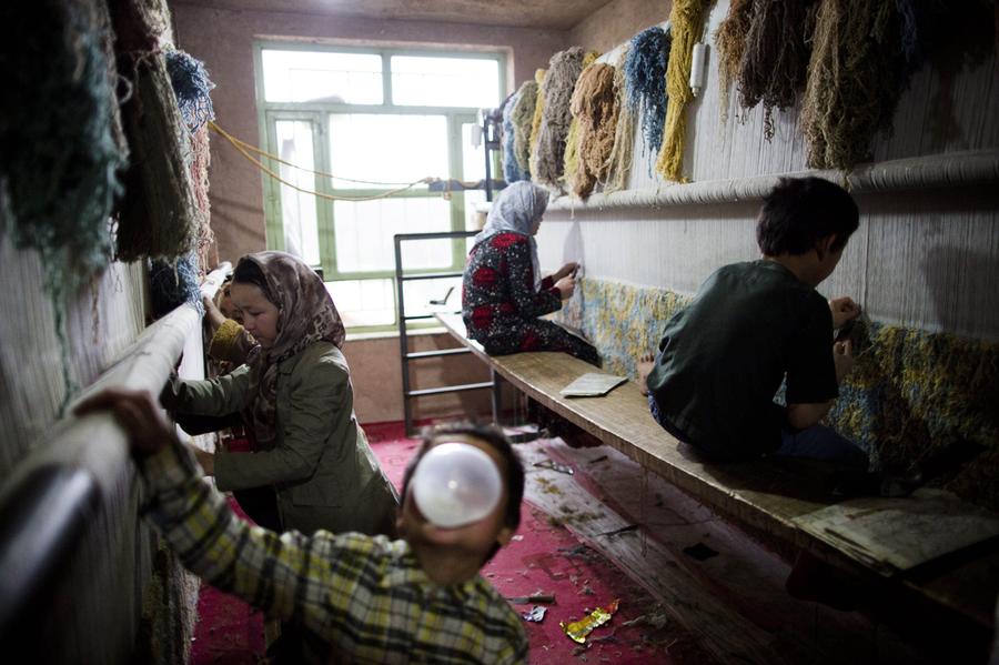 Read moreAfghan children weave carpets in a house used as a traditional carpet workshop in the northwestern city of Herat on April 1, 2014. Carpets are Afghanistan's best-known export, woven mostly by women and children in the north of the country, a trade which once employed, directly or indirectly, six million people, or a fifth of the country's population, but that figure has dropped sharply. #