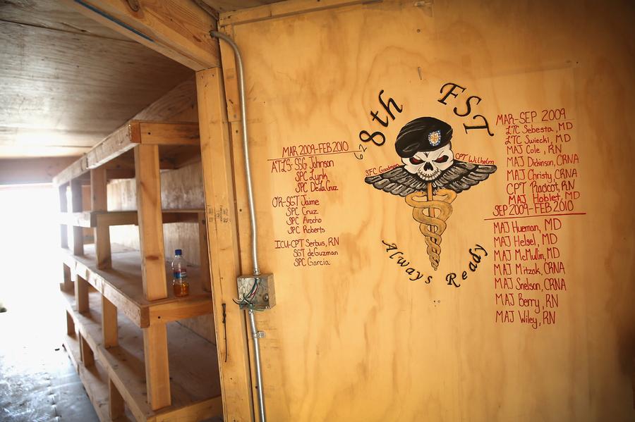 Read moreGraffiti left by a previous unit remains on the wall of an abandoned hospital site on FOB Shank that is no longer used due to a shrinking population on the FOB on April 3, 2014. #
