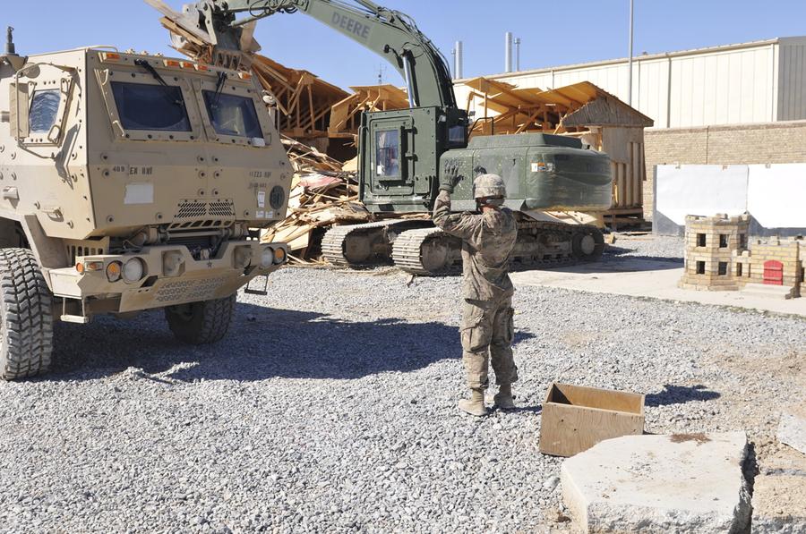 Read moreMississippi National Guard soldiers with the 858 Engineer Company, 223 Engineer Battalion demolish and haul away structures on Forward Operating Base (FOB) Shank on March 26, 2014 near Pul-e Alam, Afghanistan. As the U.S. changes its role in the 13-year-old war from combatants to advisors many FOBs, like Shank, are being downsized or closed. #