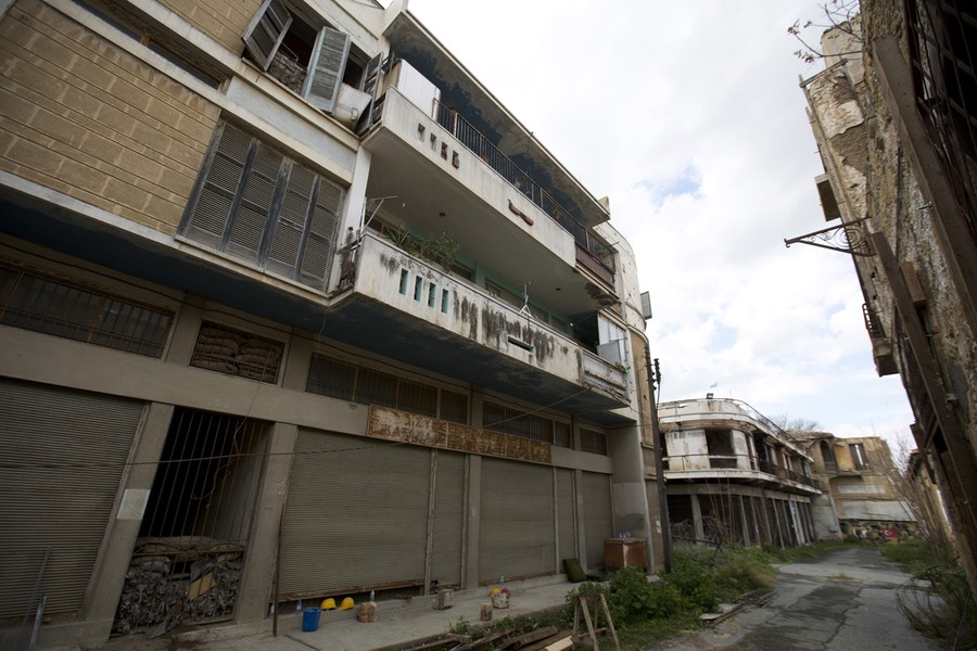 This year marks four decades since the Cyprus National Guard staged a coup that led to Turkish military intervention and escalated the civil war between the Greek and Turkish communities on the island. After the ceasefire, a heavily restricted buffer zone, controlled by the United Nations, was established between the north and south. It stretches 180 km (112 mi) across the whole island measuring 7.4 km (4.6 mi) at its widest and 3.3 m (11 ft) at its narrowest point. The demilitarized zone is restricted to the general public and no Greek or Turkish Cypriots are allowed inside. Reuters photographer Neil Hall recently visited the buffer zone, which still contains crumbling relics of times gone by - abandoned houses, businesses, and even an airport - crumbling snapshots of Cyprus in 1974.