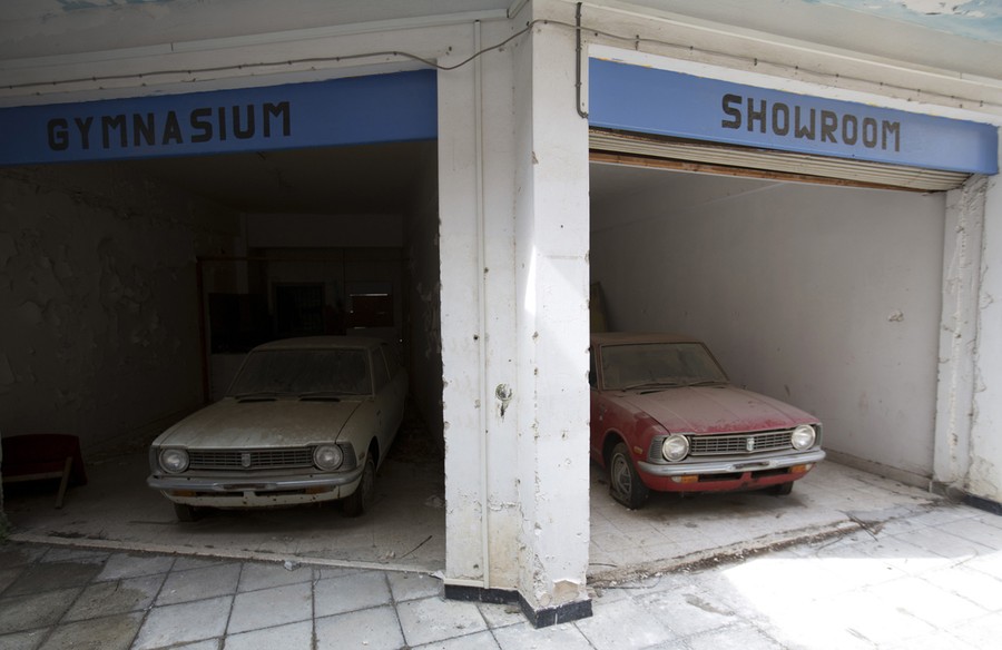 Read moreCars sit abandoned in a former shopping center inside the UN buffer zone in central Nicosia on March 12, 2014. The cars were imported from Japan to be sold at a Toyota dealership. They were stored here during the 1974 conflict and have not been moved since. #